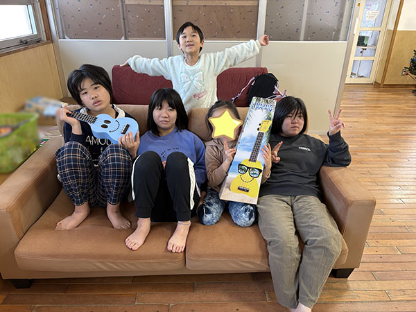 令和7年12月24日(水)、合同会社bikanri様より、児童部へ電子ピアノとウクレレを寄贈して頂きました。